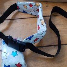 Need to put it on the car seat and when the child falls asleep just snap around their foreheads, otherwise it wakes them up. But definitely proves its purpose.