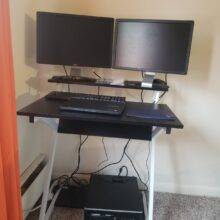 This desk's compact design is a lifesaver in my tiny apartment. The monitor shelf elevates my setup, making long work hours more comfortable, and the bottom shelf is perfect for storing books and other essentials. It was easy to put together and surprisingly sturdy. It’s stylish, functional, and exactly what I needed.
