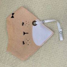 Each bib measures 7 x 15 x 13 inches (L x W x H) and comes in a choice of beige, pink, yellow, green, and grey. Each color features a different friendly animal face.