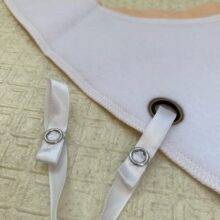 Each bib comes with a strap to hold your baby’s pacifier so it’s always right within reach.