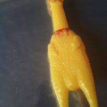 Made of 100% non-toxic rubber, our chicken measures 11 in (31cm) in length, our loud, fussy toy can go with you from parties to concerts and so much more for a screamin’-good time.