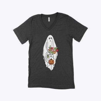 Cute Halloween Ghost Women’s Jersey V-Neck T-Shirt