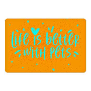 Life Is Better With Pets Pet Food Mat – Kawaii Anti-Slip Pet Bowl Mat – Printed Pet Feeding Mat
