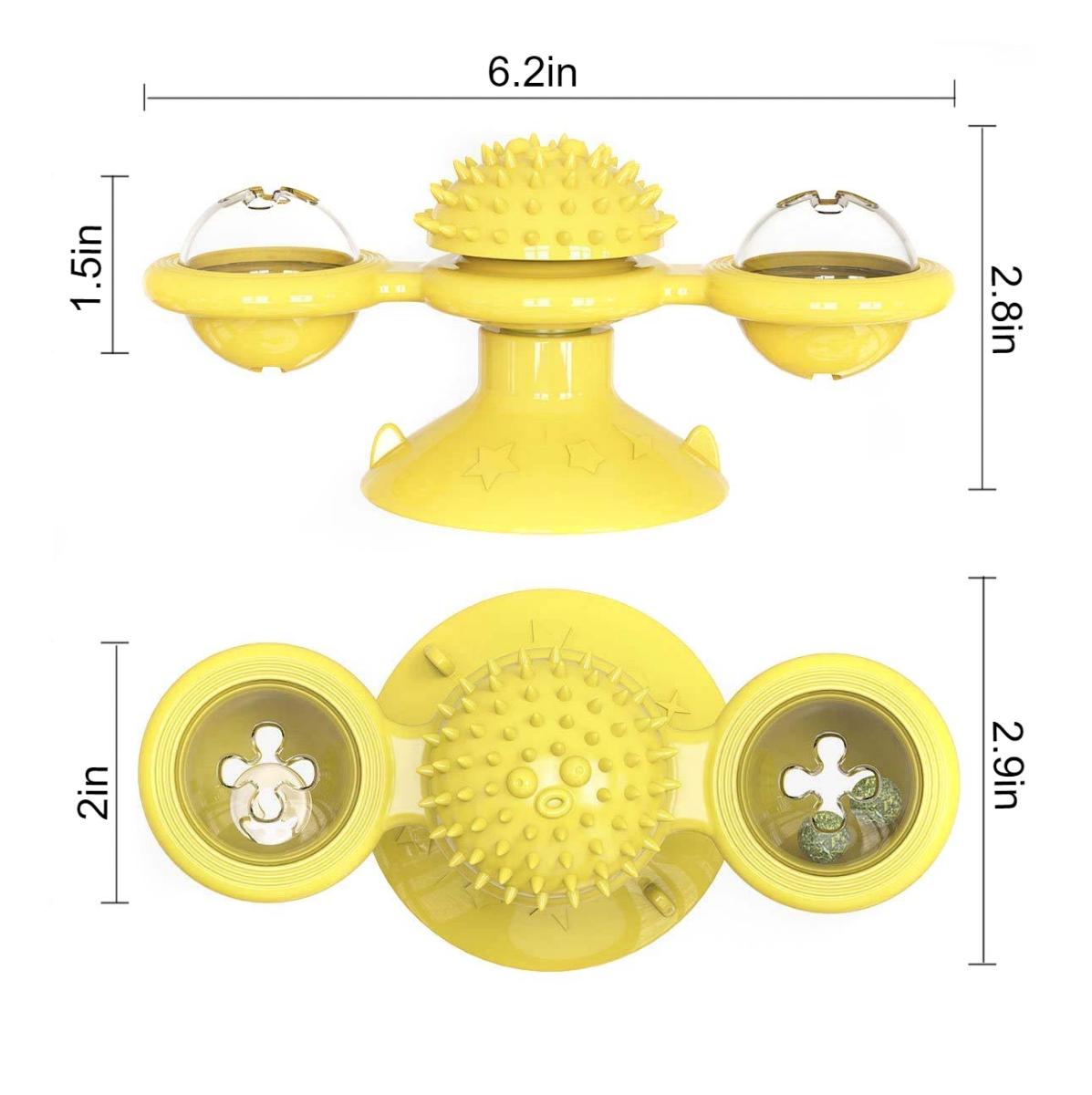 Two ball-shaped chambers on the windmill toy allow you to open up to fill with catnip, mint balls, or food even. Your order comes with two catnip light balls and two small jingly balls.